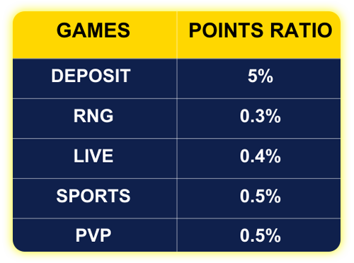 Points acquisition is about as simple and intuitive as it can get. The player’s Point Mall has different levels, and for each level, he gets points in percentage that vary by bet or deposit valid to be redeemed later. As a result, the player simply accrues more and more points each day on their journey to collecting that gigantic cash bonus.
