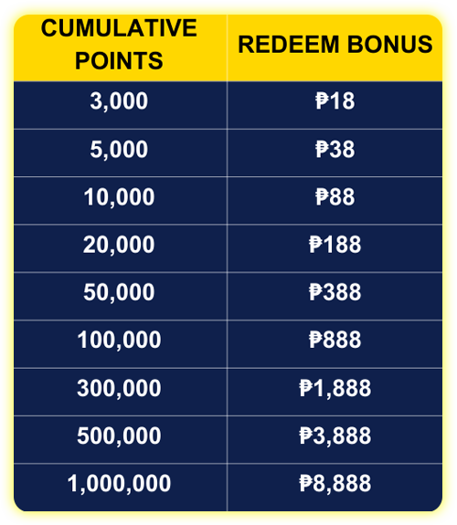 In its promotion, the central thought is earning points for daily activities. Players are encouraged to place quality bets, and they become transformed into a percentage-based point equivalent. These points are added up day by day, and as players work to meet their goals in collecting those precious redemption points over time they score a cash bonus of ₱8,888.